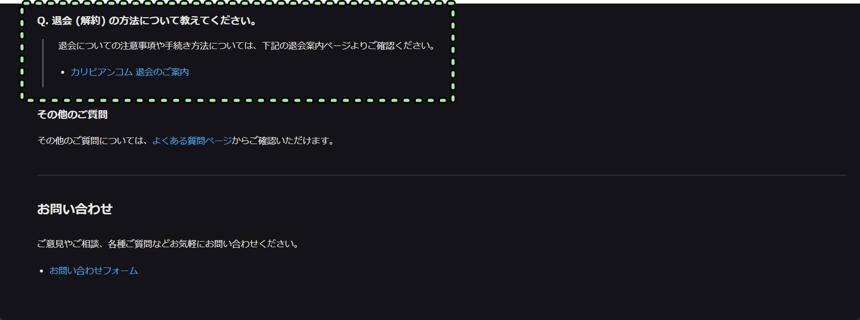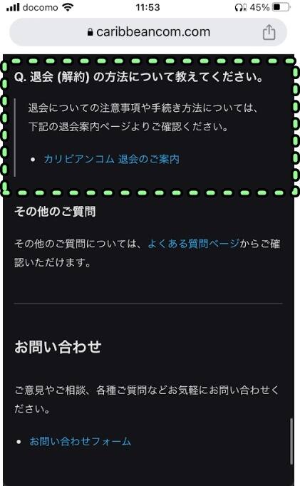 ④退会はカリビアンコムの入会案内ページの下部から専用ページに飛ぶことができます。